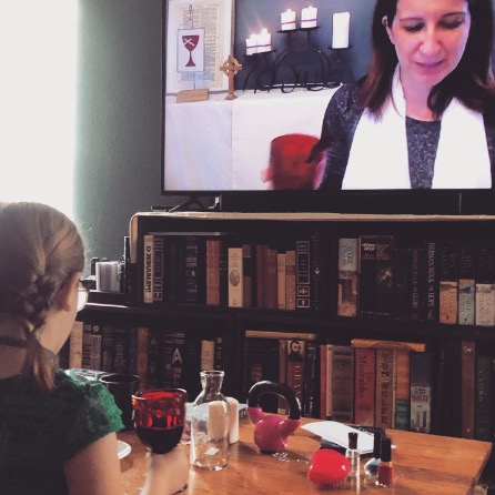 For us, participating in worship virtually means that we get ready for church every single Sunday. No worship in our pajamas. It means we prepare communion, and the kids rotate whose turn it is to serve (in our theology, the Table is open to everyone and lay folks can prepare and administer). It means we sing out loud in our living room along with the worship, and we have continued our family tradition of discussing the service over Sunday lunch.